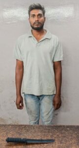हरियर एक्सप्रेस, रायपुर। दिनांक 03.03.2025 को थाना खमतराई पुलिस की टीम द्वारा अरोरा धर्मकांटा के पास में हाथ में धारदार चाकू लेकर आम लोगों को आतंकित करते आरोपी आर गोपी पिता आर नागराजन उम्र 28 वर्ष को गिरफ्तार कर आरोपी के कब्जे से अवैध रूप से रखें 01 नग लोहे का चाकू जप्त कर आरोपी के विरूद्ध थाना खमतराई में अपराध क्रमांक 238/25 धारा 25, 27 आर्म्स एक्ट का अपराध पंजीबद्ध कर कार्यवाही किया गया। आरोपी को चाकू के संबंध पूछताछ करने पर ऑनलाइन मंगाना बताये है, सबंधित कंपनी को आरोपी को चाकू दिये जाने के सबन्ध में नोटिस भेजा गया है कंपनी के विरुद्ध पृथक से कार्यवाही की जा रही है।