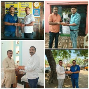 हरियर एक्सप्रेस, अकलतरा। सामाजिक संस्था वेल विशर फाउंडेशन द्वारा अकलतरा क्षेत्र के नगर पंचायत नरियरा में पशु पक्षियों के लिए गर्मी के मौसम में चारा, पानी के लिए जागरूकता अभियान चलाया जा रहा है। जिसके तहत भुविस्थापित जीवन निर्वाह भत्ता समिति के अध्यक्ष एवं भारतीय किसान संघ के जिलाध्यक्ष संजय कुमार सिंह, नगर पंचायत नरियरा के उपाध्यक्ष व वार्ड 11 के पार्षद सत्येन्द्र दुबे (बबलू), वार्ड 9 के पार्षद व जिला महामंत्री भा ज यू मो आकाश सिंह (अंकु) एवं वार्ड नंबर 10 पार्षद मनोज साहू(मोनू) व अन्य को मिट्टी का चकोर भेट किया गया, इस महत्वपूर्ण अभियान के विषय को ले कर वेल विशर फाउंडेशन के अध्यक्ष अविनाश सिंह ने कहा कि संस्था द्वारा बेजुबानों के लिए पानी चारे के लिए मिट्टी के चकोर बांटकर लोगो को जागरूक कर रहे हैं, पहले अकलतरा नगर पालिका में जनप्रीतिनिधियो सामाजिक कार्यकर्तों को बांटा गया। इसी कड़ी में नरियरा पँचायत में जागरूकता कार्यक्रम चलाया जा रहा है।ये एक पुनीत कार्य है, हमारी संस्था जनप्रतिनिधियों, समाजिक कार्यकताओं, आम नागरिकों को मिट्टी के चकोर बाट रही है, वेल विशर फाउंडेशन के सचिव चिराग शर्मा ने बताया कि हम मानव बोल कर या किसी से मांग कर अपनी भूख प्यास मिटा लेते है पर पशु पक्षी ऐसा नही कर पाते, इसीलिए हमारी संस्था गर्मी के मौसम में लोगो को मिट्टी के चकोर बांट रही है, वेल विशर फाउंडेशन की कोषाध्यक्ष रंजना सिंह ने लोगो से अपील की है कि हमारे द्वारा चलाये जा रहे मुहिम में सहयोग प्रदान करें, संस्था के सदस्य दीपक साहू, मोहन कश्यप ने अपील की हैं अपने अपने छत पर बेजुबानों पक्षियों के लिए पानी चारे की व्यवस्था करे, इस मौके पर वेल विशर फाउंडेशन के अध्यक्ष अविनाश सिंह, सचिव चिराग शर्मा, कोषाध्यक्ष रंजना सिंह, सदस्य गौतम साहू, दीपक साहू, मोहन कश्यप, श्रीपाल सिंह, वीरेंद्र साहू, सौरभ सिंह, शरद सिंह, सतीश मनिकपुरी, नितेश कुमार, प्रेम निर्लमकर उपस्थित रहे।