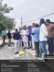 साथ ही सड्डू तालाब के सभी घाटों को सुव्यवस्थित करने का कार्य सड्डू तालाब महापर्व आयोजन समिति के सभी पदाधिकारियों के साथ सहयोग करते हुए नगर निगम जोन 9 द्वारा करवाया गया है। इस कार्य पर भी ग्रामीण विधायक ने संतोष व्यक्त किया है। सड्डू तालाब के समीप नालियों का गन्दा पानी सड़क पर बहने की नागरिकों द्वारा निरीक्षण के दौरान की गयी जनशिकायत पर रायपुर ग्रामीण विधायक मोतीलाल साहू ने नगर निगम जोन 9 जोन कमिश्नर अंशुल शर्मा सीनियर को सम्बंधित स्थल का प्रत्यक्ष निरीक्षण कर समस्या का शीघ्र समाधान करवाने कहा है।