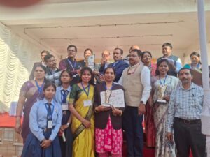 सहायक शिक्षक सामग्री शिक्षक वर्ग के अंतर्गत पतांजल यादव शा उ मा धाराशिव नवागढ जांजगीर चांपा को प्रथम स्थान सीमा स्वर्णकार पीएमश्री सेजेस बाल्को कोरबा को तृतीय स्थान।