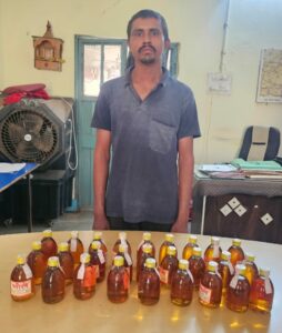 हरियर एक्सप्रेस, रायपुर। विवरण यह है कि पुलिस उप महानिरीक्षक एवं वरिष्ठ पुलिस अधीक्षक महोदय डॉ. लाल उमेद सिंह, अतिरिक्त पुलिस अधीक्षक महोदय अटल नगर एवं नगर पुलिस अधीक्षक महोदय अटल नगर के दिशानिर्देश व मार्गदर्शन में तथा निरीक्षक थाना प्रभारी दीपेश जायसवाल गोबरा नवापारा के नेतृत्व में अवैध शराब बिक्री पर पूर्णरूपेण अंकुश लगाने हेतु एवं अवैध शराब बिक्री संचालित करने वालो पर लगाम लगाने कि नियत से मुखबीर से सूचना मिली कि श्रीराम सोनकर नामक व्यक्ति अपने सोनकर ढाबा में एक प्लास्टिक बोरी में बिक्री हेतु शराब रखा है। कि मुखबिर सूचना पर हमराह स्टाफ व गवाहान के मुखबिर के बताये स्थान ढाबाबस स्टैंड के पास श्री राम सोनकर के द्वारा अवैध शराब बिक्री करने हेतु रखा है कि मुखबिर सूचना पर हमराह स्टाफ व गवाहान के मुखबिर के बताये बताएं स्थान सोनकर ढाबा बस स्टैंड नवापारा पहुँचकर मुखबिर के बताएं व्यक्ति को घेराबंदी कर पकड़ा गया। पूछताछ करने पर अपना नाम – श्री राम सोनकर पिता रामकुमार सोनकर उम्र 27 साल साकिन केसर पारा नवापारा वार्ड क्रमांक 13 थाना गोबरा नवापारा जिला रायपुर का रहने वाला बताया उक्त आरोपी को गिरफ्तार कर उनके *कब्जे से एक प्लास्टिक के बोरी में 28 पौवा देशी मशाला शराब कुल मात्रा 05 लीटर 40 ML किमती करीबन 2800/ रुपये जप्त* कर आरोपी के विरूद्ध थाना गोबरा नवापारा में अपराध क्रमांक – 441/25 धारा- 34 (2) आबकारी एक्ट का अपराध पंजीबद्ध कर आरोपी के विरूद्ध कार्यवाही कर रिमाण्ड पर रायपुर न्यायालय भेजा गया।