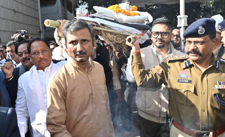 “संवेदना की रोशनी अमर रहेगी: विनोद कुमार शुक्ल के निधन पर मारवाड़ी शमशान घाट में सांसद बृजमोहन अग्रवाल की श्रद्धांजलि”