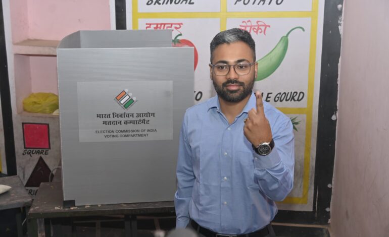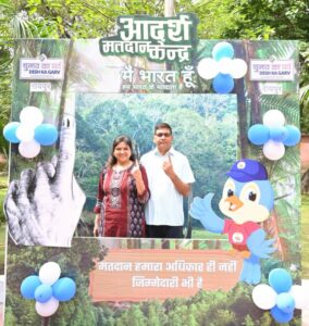 हरियर एक्सप्रेस, रायपुर। लोकसभा आम निर्वाचन-2024 के तृतीय चरण के अंतर्गत मुख्य सचिव अमिताभ जैन ने आज सुबह अपनी पत्नी रितु जैन के साथ देवेन्द्र नगर आफिसर्स काॅलोनी स्थित आदर्श मतदान केन्द्र क्रमांक 52 में मतदान किया। मुख्य सचिव श्री जैन ने मतदान करने के उपरांत अपनी उंगली में लगे अमिट स्याही का निशान दिखाते हुए कहा कि लोकतंत्र में अपनी भागीदारी सुनिश्चित करने के लिए सभी नागरिकों को निर्भीक, स्वतंत्र और निष्पक्ष होकर मतदान करना चाहिए।