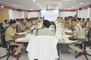 रायपुर पुलिस ग्राउंड में फ्राइडे परेड के बाद वरिष्ठ पुलिस अधीक्षक द्वारा आहुत की गई अपराध समीक्षा बैठक में आदतन अपराधियों की जमानत निरस्त कराने का दिया निर्देश