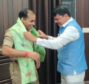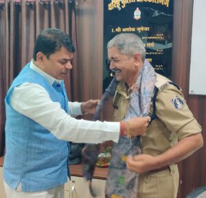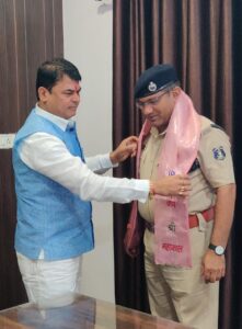 हरियर एक्सप्रेस, दुर्ग। भिलाई के जयंती स्टेडियम में सात दिनों तक शिव महापुराण की कथा का आयोजन किया गया था। समापन के बाद बोल बम सेवा एवं कल्याण समिति के अध्यक्ष दया सिंह ने शिव महापुराण कथा मे हर प्रकार का सहयोग देने के लिये दुर्ग रेंज के आईजी राम गोपाल गर्ग एवं एसएसपी जितेंद्र शुक्ला व एडीएसपी सुखनंदन राठौर, एडीसीपी ग्रामीण वेदवर्त सिरमौर से मुलाकात कर उनका एवं जिला प्रशासन का आभार व्यक्त किया।