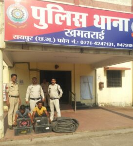 दिनांक 10.05.2024 को प्रार्थी शैलेन्द्र पाल ने रिपोर्ट दर्ज कराया कि दिनांक 09.05.24 को शाम 07.00 बजे बाम्बे एमपी लॉजीस्टीक ट्रांसपोर्ट यार्ड बसंत विहार गोंदवारा रायपुर में ताला लगाकर अपने घर चला गया था। यार्ड के अंदर ट्रक कमांक एमएच 31 एफसी 4462 तथा एमएच 40 एन 5282 खड़ी थी, जिसे दिनांक 10.05.2024 को सुबह 10.00 बजे यार्ड जाकर देखा तो यार्ड में खडी ट्रकों में लगी 04 नग बैटरी एवं 01 नग तिरपाल नहीं था, जिसे कोई अज्ञात चोर चोरी कर ले गया हैं कि प्रार्थी कि रिपोर्ट थाना खमतराई में अपराध कमांक 440/24 धारा 457,380 भादवि कायम कर विवेचना में लिया गया। विवेचना दौरान आरोपी पता तलाश के जरिये मुखबीर से सूचना मिला कि 02 व्यक्ति गोंदवारा ओवर ब्रिज के पास अपने कब्जे में 04 नग बैटरी छुपाकर रखे है जिसे बेचने के लिए ग्राहक तलाश कर रहे है कि मुखबीर के बताये हुलिया के दोनों व्यक्ति को घेरांबदी कर पकडकर पुछताछ करने पर दोनों व्यक्ति द्वारा दिनांक 09.05.2024 को बाम्बे एमपी लॉजीस्टीक ट्रांसपोर्ट यार्ड बसंत विहार गोंदवारा में रखे ट्रक क्रमांक एमएच 31 एफसी 4462 तथा एमएच 40 एन 5282 से 04 नग बैटरी एवं 01 नग तिरपाल को चोरी करना और समान को गोंदवारा ओवर ब्रिज के पास छुपाकर रखना बताये, आरोपियों द्वारा रखे स्थान पर 04 नग बैटरी एवं 01 नग तिरपाल किमती 40,000 रूपये को आरोपियों के कब्जे से जप्त कर आरोपियों को गिरफ्तार कर न्यायिक रिमाण्ड पर भेजा गया।