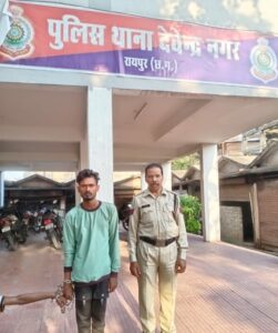 हरियर एक्सप्रेस, रायपुर। थाना देवेन्द्र नगर पुलिस की टीम द्वारा थाना देवेन्द्र नगर क्षेत्रांतर्गत शराब दुकान के पास हाथ में धारदार चाकू लेकर आम लोगो को आतंकित करते आरोपी राजू कुमार साहू पिता संपत कुमार साहू उम्र 23 साल निवासी भरत नगर झण्डा चौक थाना गुढ़ियारी रायपुर को गिरफ्तार कर उसके कब्जे से अवैध रूप से रखें 01 नग धारदार चाकू जप्त कर आरोपी के विरूद्ध थाना देवेन्द्र नगर में अपराध क्रमांक 209/23 धारा 25, 27 आर्म्स एक्ट का अपराध पंजीबद्ध कर कार्यवाही किया गया।