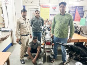 हरियर एक्सप्रेस, रायपुर। प्रार्थी सुमित राव ने थाना गोलबाजार उपस्थित आकर रिपोर्ट दर्ज कराया कि दिनांक 18.11.2024 को प्रार्थी के मोटर साइकल हीरो स्प्लेंडर प्लस CG-04-AK-9691 को पुराना बस स्टैंड, शराब दुकान के पास, गोलबाजार, रायपुर से कोई अज्ञात चोर चोरी कर लिया के रिपोर्ट पर थाना गोलबाजार में अपराध क्रमांक 365/2024 धारा 303(2) BNS पंजीबद्ध कर विवेचना में लिया जाकर पातासाजी किया जा रहा था।