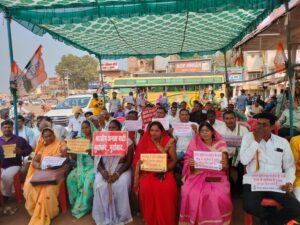 उधो राम वर्मा कहा कि जिस प्रकार जब से भाजपा की सरकार प्रदेश में बनी है एक भी दिन ऐसी नहीं बीती जिस दिन बड़े अपराध नहीं हुआ हो। हत्या, डकैती, बलात्कार, आम हो गई है लोगों का अब सरकार, प्रशासन पर से विश्वास उठ गया है। लोग स्वयं सड़कों पर आकर प्रदर्शन कर रहे इससे बड़ी अराजकता कुछ भी नहीं हो सकती। धरना प्रदर्शन पश्चात राज्य सरकार के खिलाफ जमकर नारे लगाए एवं राज्यपाल के नाम ज्ञापन सौंपा गया। जिसमें माग की गई राज्य सरकार को तुरंत बर्खास्त कर राष्ट्रपति शासन लगाई जाय जिससे प्रदेश में अराजकता को खत्म किया जा सके। कार्यक्रम में प्रदेश सचिव प्रवीण साहू, ब्लॉक अध्यक्ष विद्याभूषण सोनवानी, गिरधारी साहू, कोमल साहू, धनराज मध्यानी, चंद्रहास साहू, जीत सींग, डामन साहू, श्रवण चंद्राकर, बलविंदर, राधाकृष्ण टंडन, निमानिंबलकर आदि मौजूद रहे।