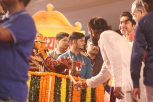 बागेश्वर धाम पीठाधीश्वर पूज्य पं. धीरेंद्र कृष्ण शास्त्री की पहले दिन की कथा समाप्त के बाद आरती में मुख्य यजमान के रुप में पर्यटन एवं संस्कृति, धार्मिक न्यास एवं धर्मस्व मंत्री राजेश अग्रवाल, दक्षिण कौशल पीठाधीश्वर महंत राजीव लोचन दास, आयोजक परिवार के सदस्य श्री लक्खी प्रसाद अग्रवाल, सौरभ अग्रवाल श्रवण शर्मा, के अलावा स्व. श्री पुरुषोत्तम अग्रवाल स्मृति फाउंडेशन के सदस्यगण शामिल हुए।