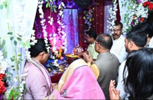 तीजा मिलन समारोह में पहुंचे मुख्यमंत्री विष्णु देव साय ने राजस्व मंत्री टंकराम वर्मा के निवास में स्थापित भगवान गणेश की पूजा अर्चना की…