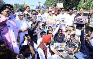 हरियर एक्सप्रेस, रायपुर। अखिल भारतीय कांग्रेस कमेटी के निर्देश पर प्रदेश कांग्रेस अध्यक्ष दीपक बैज के नेतृत्व में प्रदेश कांग्रेस ने बाबा अंबेडकर मूर्ति से राजभवन तक पैदल मार्च निकाला।